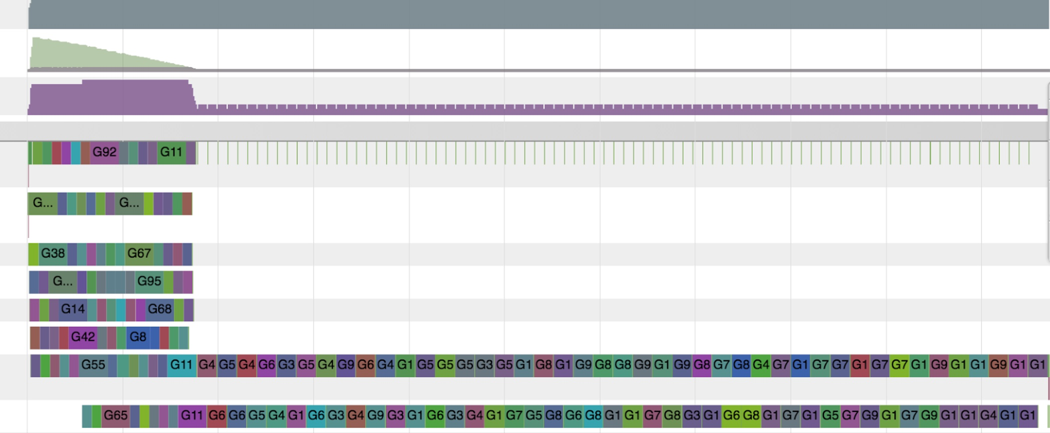 Ở trên, trực quan hóa go tool trace cho thấy thực thi bắt đầu tốt, sau đó trở thành tuần tự. Điều này gợi ý có thể có tranh chấp lock cho một tài nguyên chia sẻ tạo ra điểm nghẽn.
