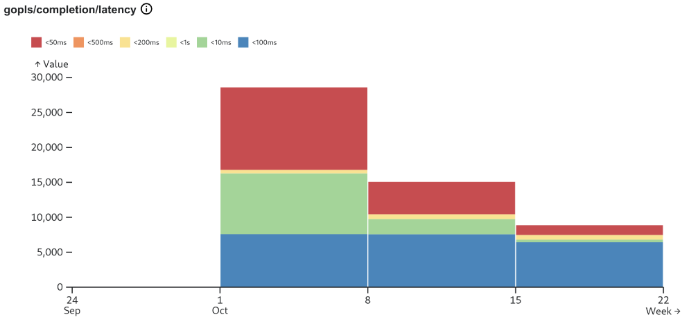 gopls/completion/latency:<10ms gopls/completion/latency:<50ms gopls/completion/latency:<100ms ...